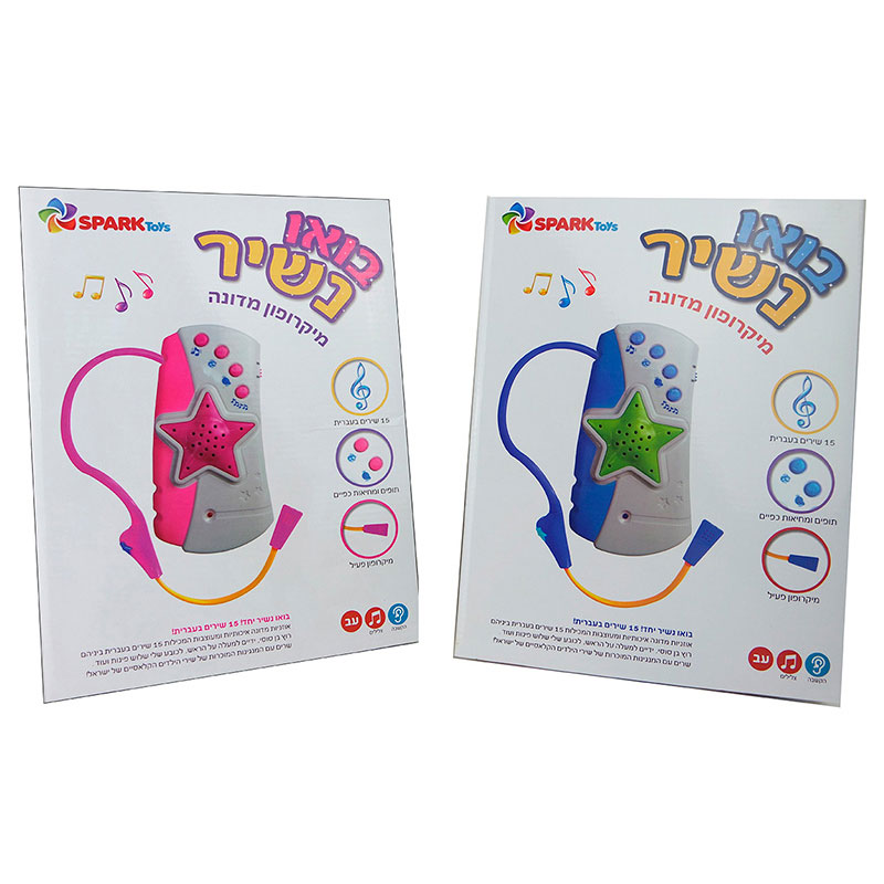 15 שירים שילדים הכי אוהבים! לכובע שלי אוניה אצא לי השוקה מאחורי ההר אני מנגן ידיים למעלה הברווזה עליזה שלושה דגים אצא לי אל היער אני עומדת במעגל על שפת הנחל הרכבת (בין הרים ובין סלעים) מקהלת נגנים כבר סידרנו כאן רכבת יש לנו תיש – אפקטים של מחיאות כפיים וקריאות עידוד – שליטה בעוצמת הקול – חיבור ל MP3 – ניתן לדפדף בין השירים ולשיר את השיר שרוצים – ניתן לרכוש בורוד ובכחול